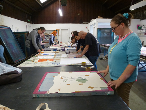The group were so involved in screen-printing that cameras were mostly forgotten about but here are some photos of the group at work and some of their results.
