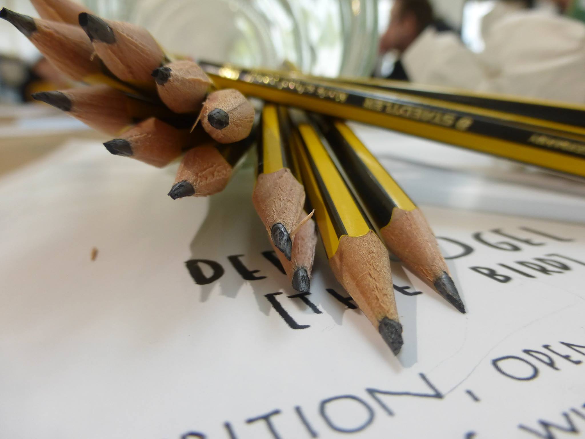 This included a visit to the House for an Art Lover and a couple of drawing sessions. The drawings were made in response to some of the features in the house and also to Carolyn’s work in her exhibition ‘Der Vogel [The Bird]’ where she focuses on a carving of a bird’s head which can also be found inside the house.