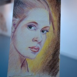 See hundreds of Jim’s delicate coloured pencil portraits hung and strung across the Project Ability gallery.