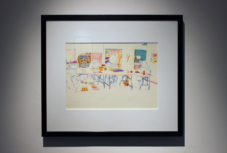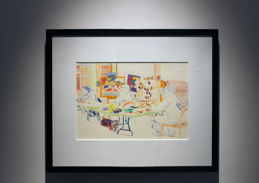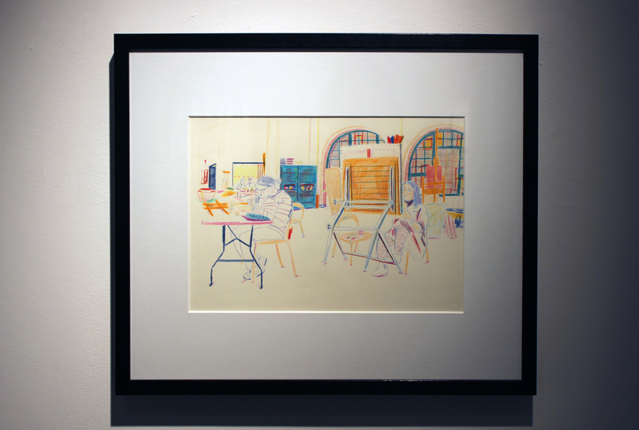 Drawing People Drawing is a selection of 10 studies depicting the people who use the studios at Project Ability. These illustrations developed into an honest and intimate portrait of artists absorbed within the act of making. They also depict the studios themselves, highlighting the many ways in which the spaces are used and the potential for creativity that they hold.”