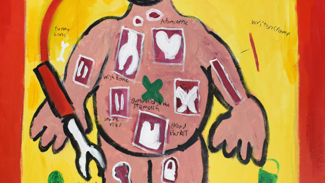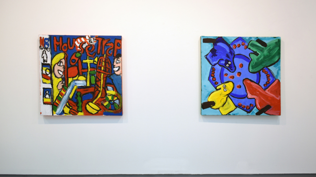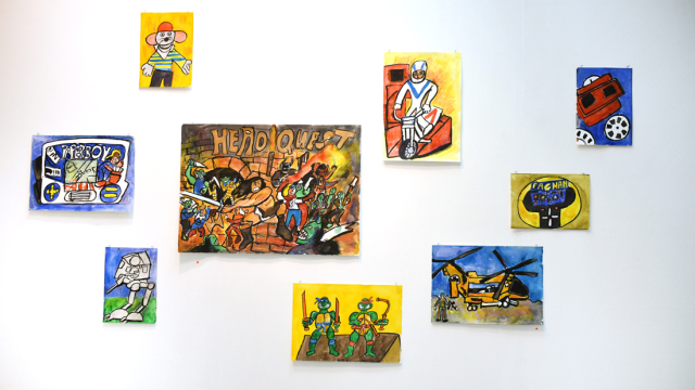 Most of the paintings are quite impressive in size (like Operation, which is 120x150cm) and are covered in bright, bold acrylics. The smaller paintings included in I like things I remember are in turn a mixture of watercolour, colour pencils and ink on paper, which make for dynamic and fun artworks in Jonathan’s distinctive style.