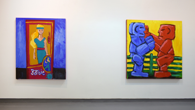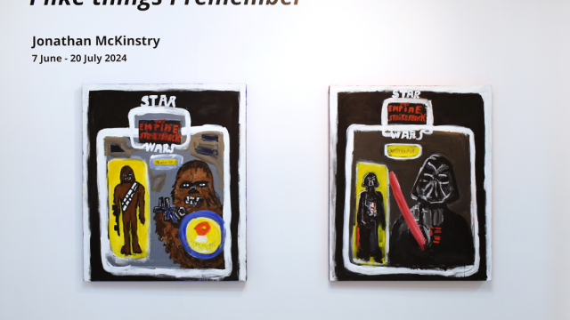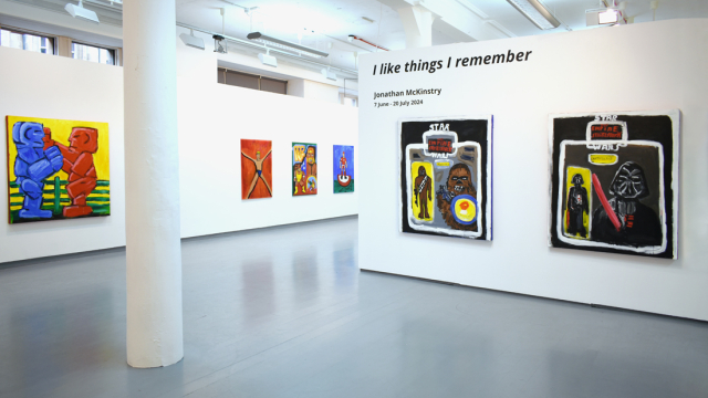 Iconic imagery from the 70s and 80s, including, Wimpy Burgers, My Little Pony and Star Wars are referenced, with the colours of branding and packaging used to invoke memories of McKinstry’s youth. Jonathan’s favourite childhood board games are featured too, like Operation, Buckaroo and Hungry Hippos. Action figures, one of Jonathan’s lasting loves, also play a part in the exhibition.