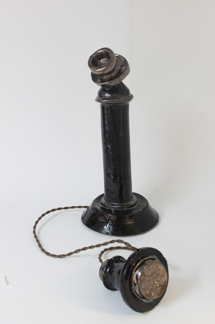 Cameron Morgan’s latest creations come in the form of ceramic slip-cast telephones. Ranging from the ‘Candlestick’ telephones of the 1880’s to the ‘Brick’ mobile phone of the 1980’s, each piece is an edition of five and as with much of Morgan’s ceramic works, they are sized to be just larger than the real thing.