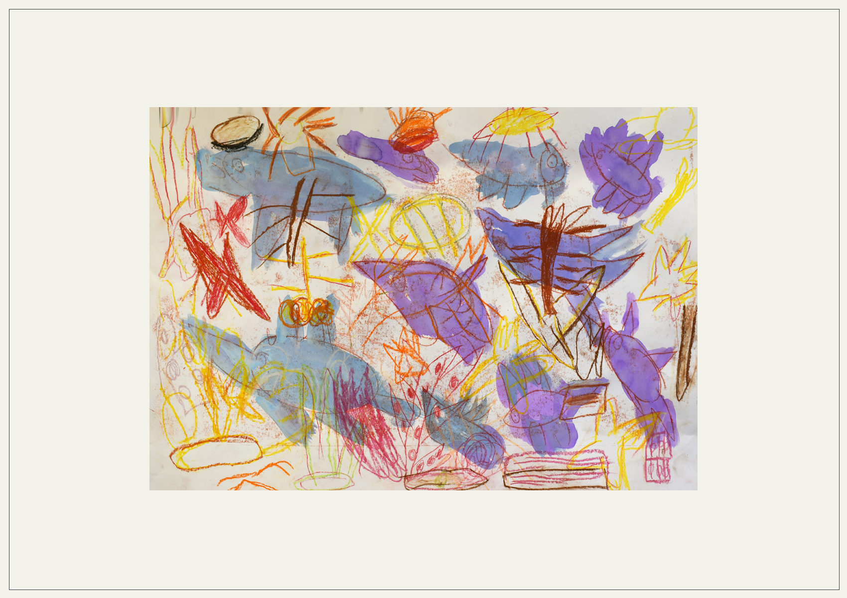 Fish By Jude Hewitt Ink And Pastel On Paper 38x55cm Violet