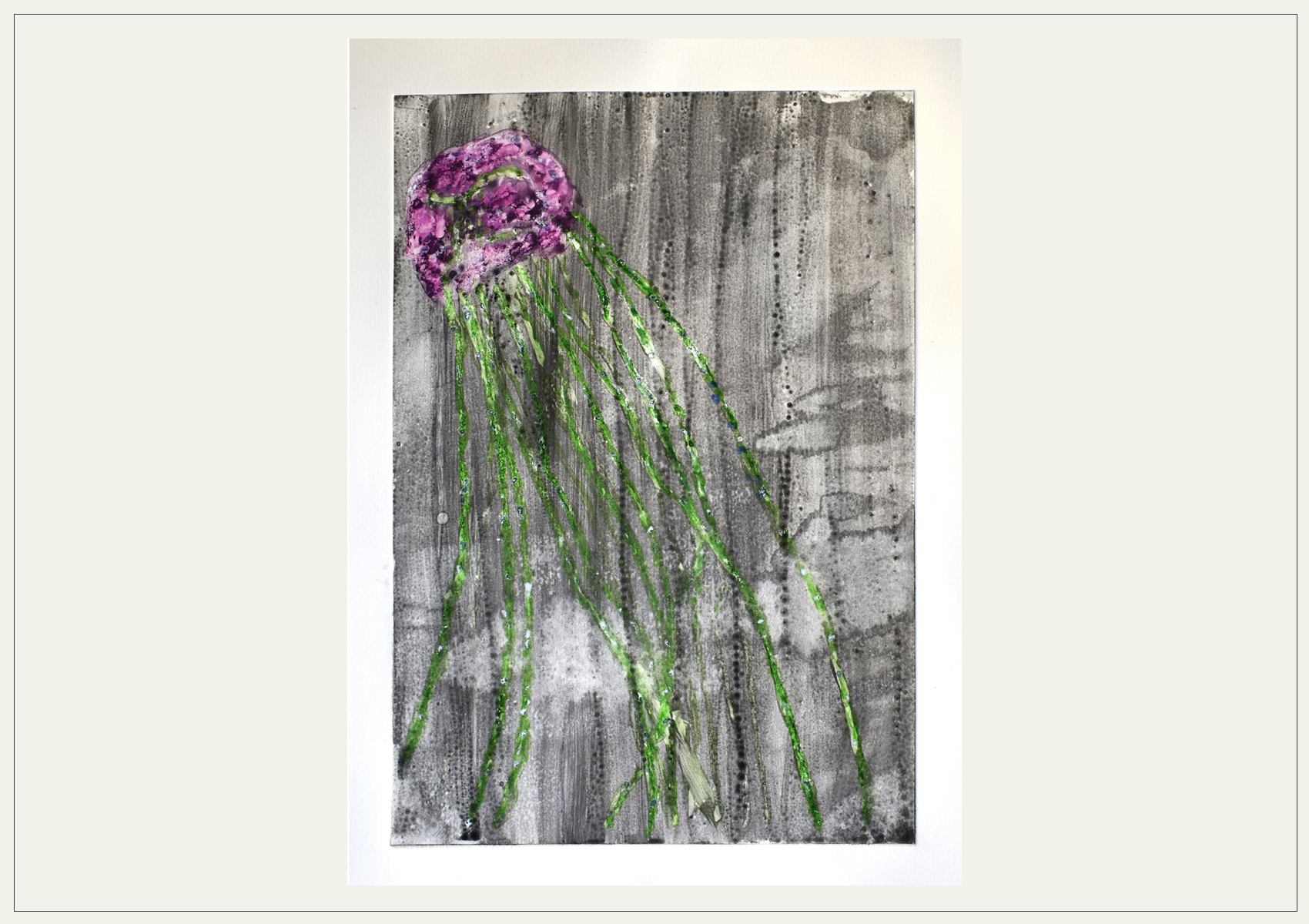 Under The Ocean By Andrew McMillan 50x70cm Mixed Media On Paper Violet