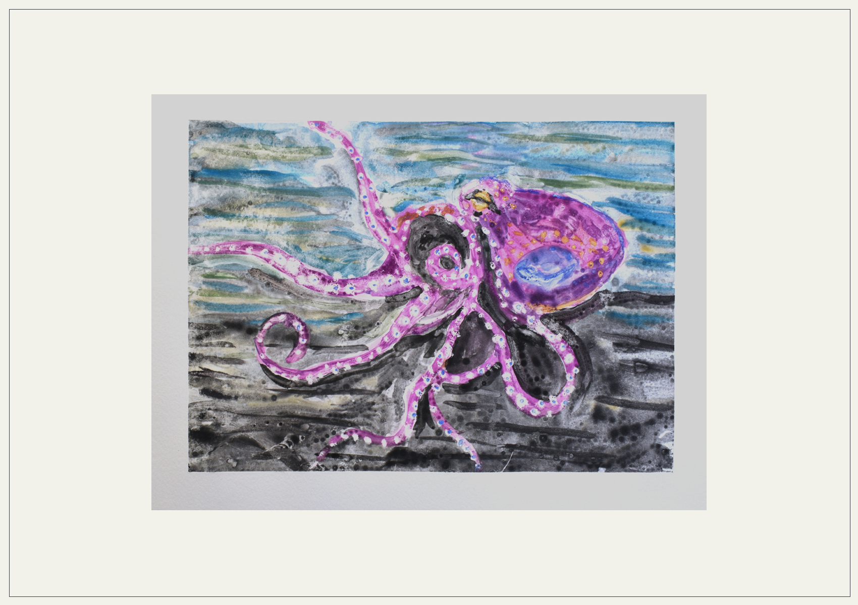Octopus By John McNaught Mono Print 21x29cm Violet