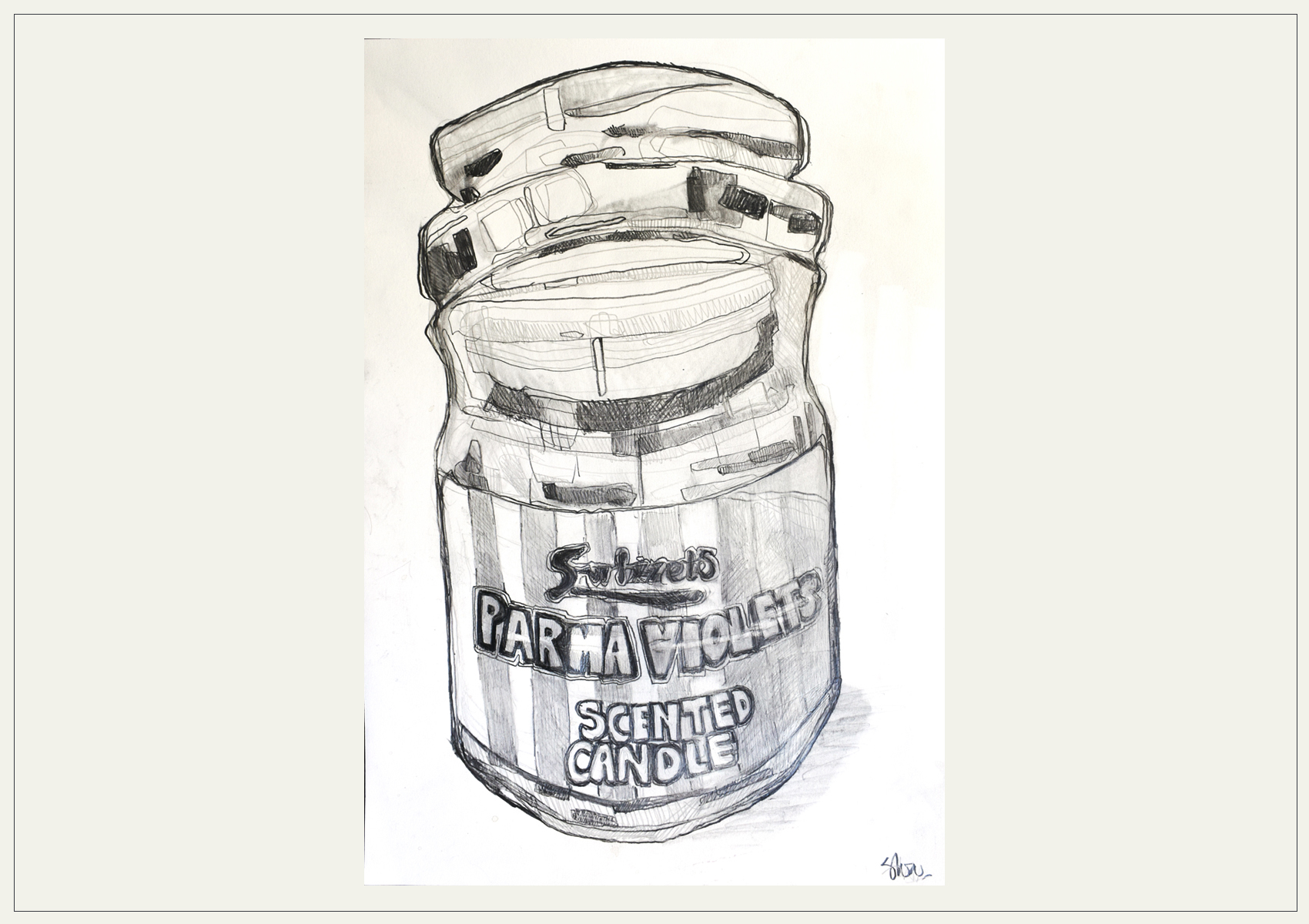 Parma Violets Scented Candle By Stuart Low 30x42cm Pencil On Paper Violet