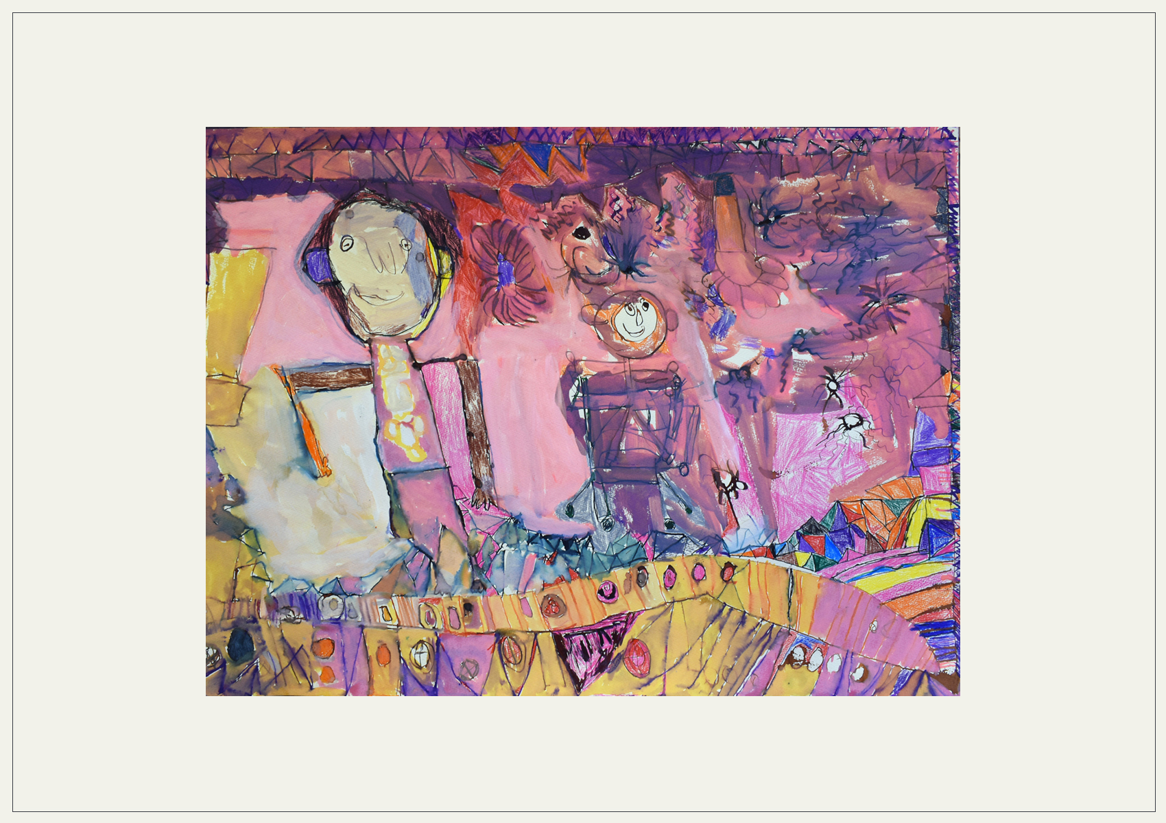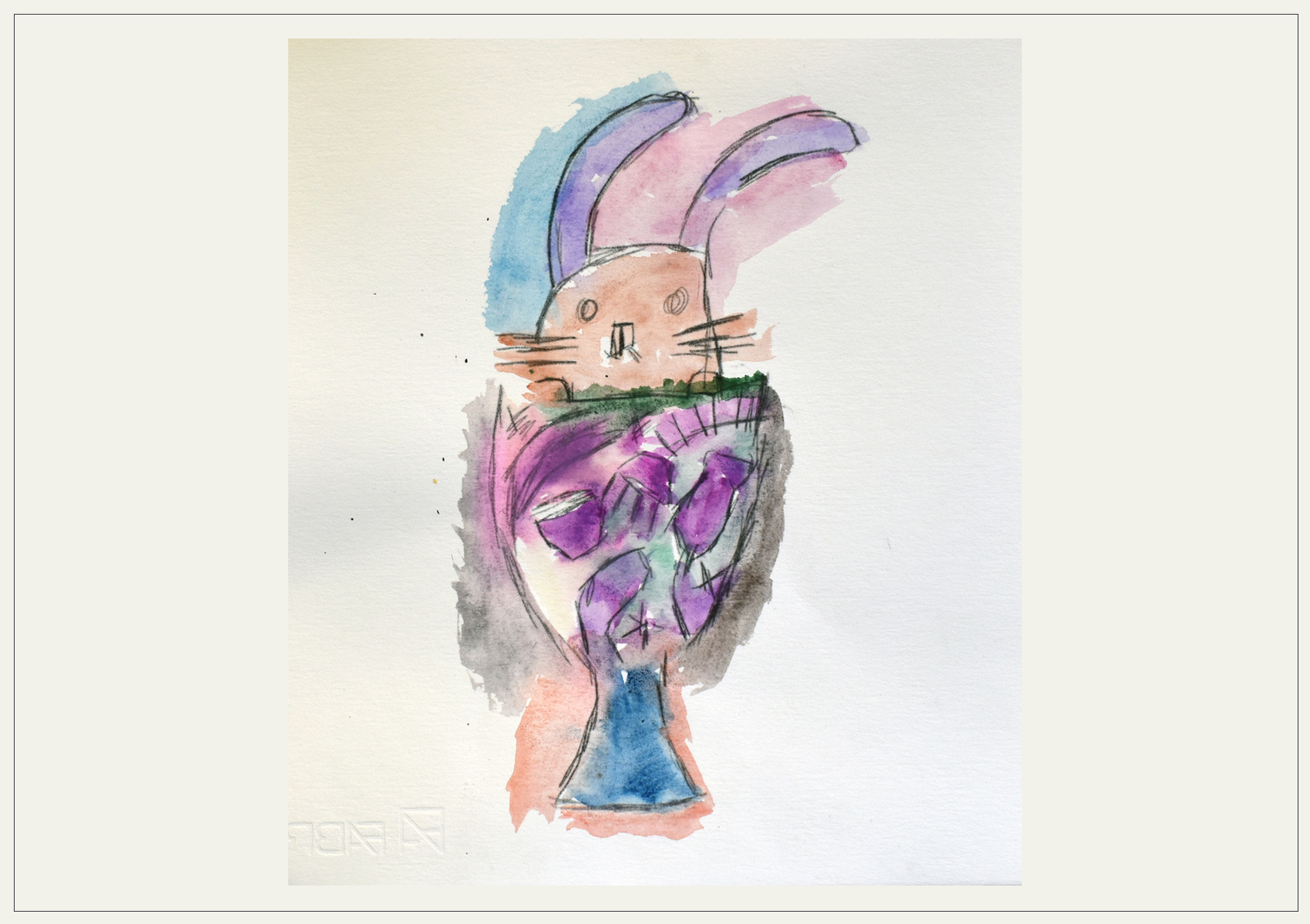 Pink Bunny By Judith Abubakar 29x26cm Mixed Media on paper -Violet