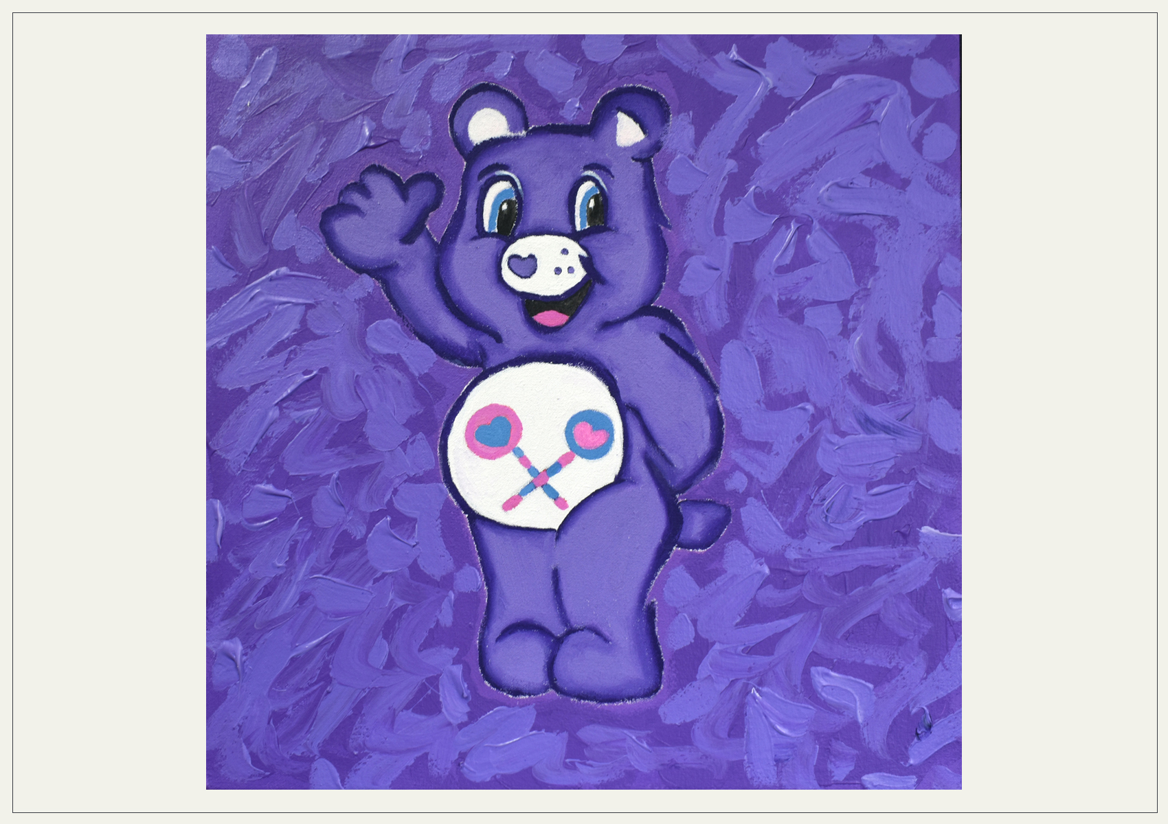 Purple Care Bear By Amy McLean 40x40cm Acrylic On Canvas Violet