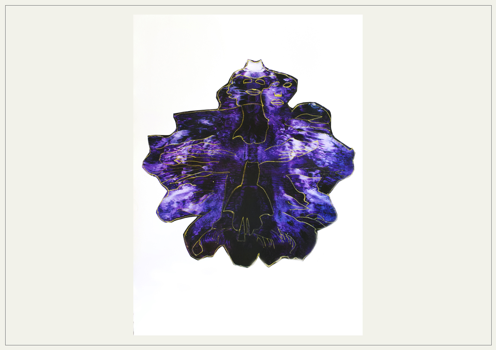 Sappho Emerging As A Violet, Embodied As Twins By Mattie Kennedy 41x30cm Decalcomania Cutout Print Violet