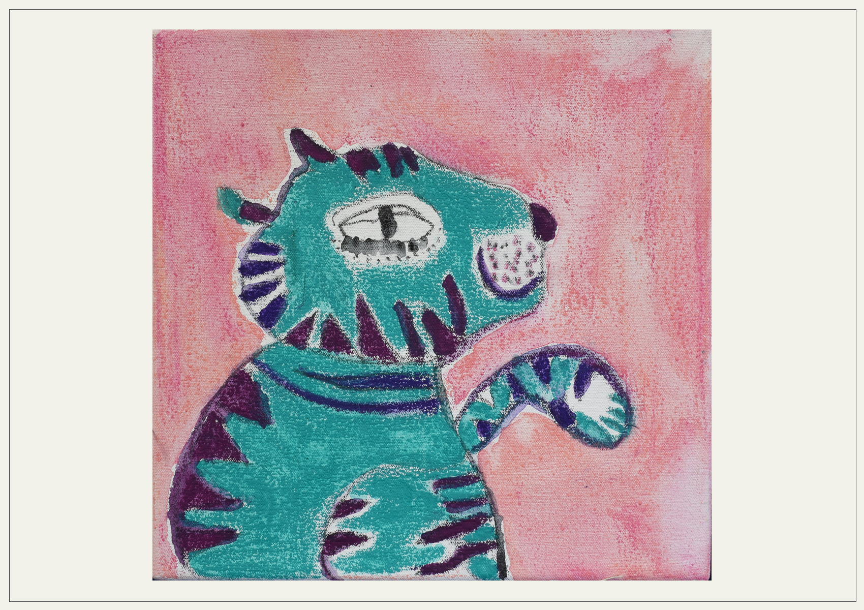 Stripe The Cat By Vincent May 25x25cm Mixed Media On Canvas Violet