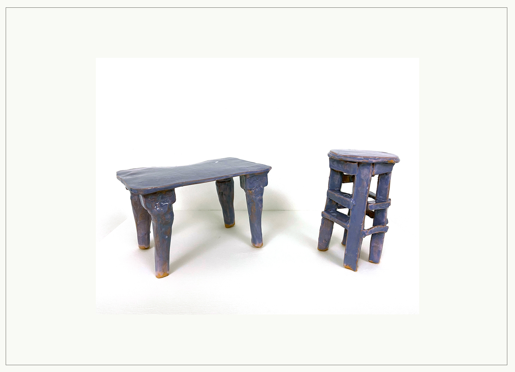 Table and Stool by Peter Johnston - ceramic - table 20x15x13cm - stool 16x10x10cmm -1- Violet