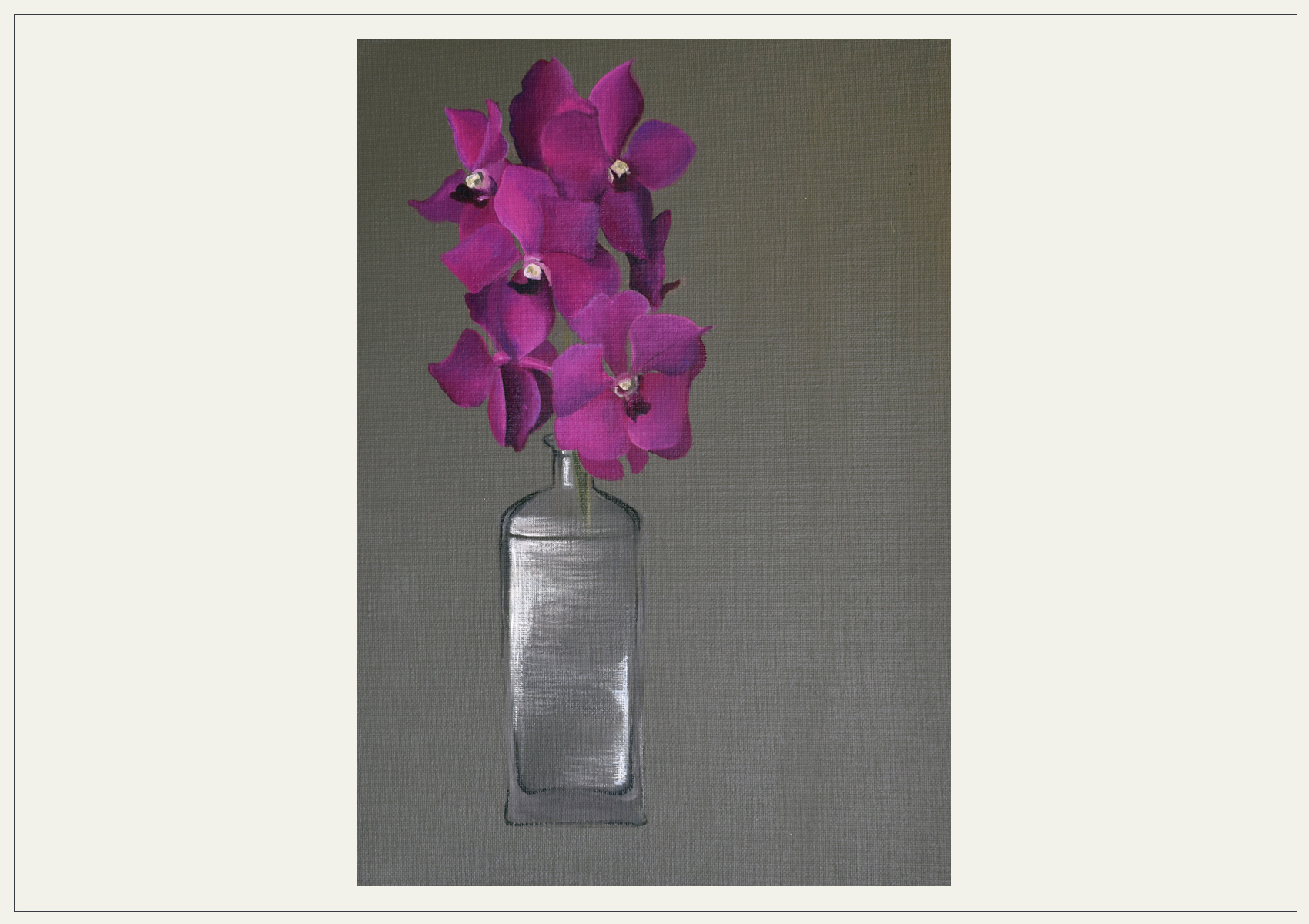 Vanda Orchids By Lynne Woods 36x25cm Oil On Board Violet
