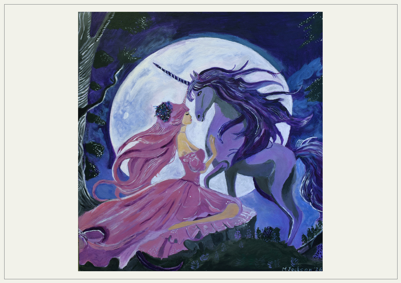 Unicorn Moonlight By Margaret Jackson 60x56cm On Canvas Violet