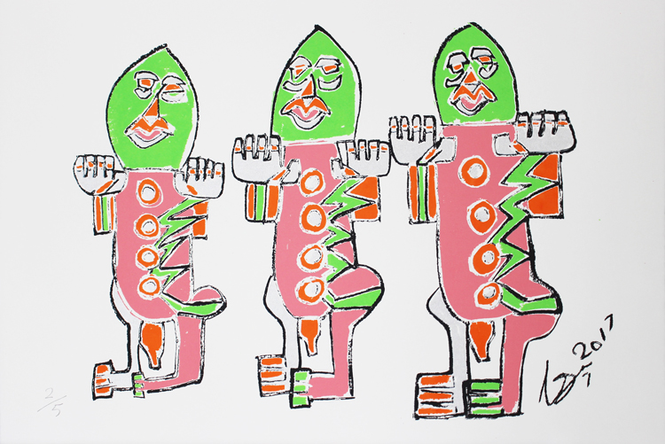 ‘The Three Stooges’ was inspired from the 80 strong assembly of identical two-metre-tall graphite figures titled, ‘Black and Blue: The Invisible Man and the Masque of Blackness’ by British-Trinidadian artist, Zak Ove. Cameron Morgan visited the sculpture park during a two week residency at The Art House in Wakefield where he was working with print maker Richard Marsden. The residency was supported by a Creative Scotland Development grant Cameron received in 2017.